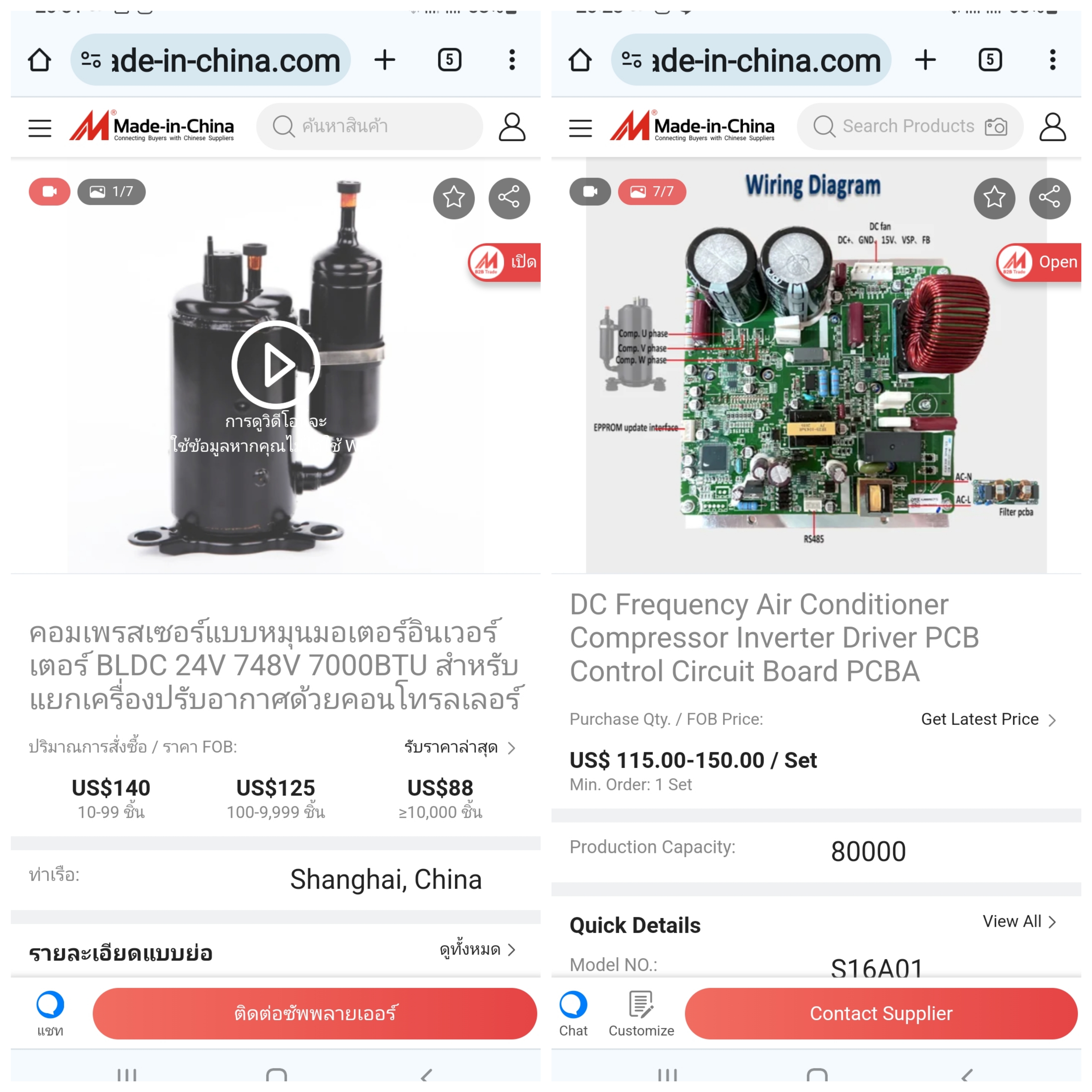 ถ้าไม่ติดที่ต้องสั่งอย่างน้อยขั้นต่ำ​ 10 ชิ้น​... ผมจะลองสั่งคอมป์แอร์​มาทำเองมันซะเลย​ ๕๕๕  รถไฟ​ฟ้าน่าจะ​ทำยากกว่ายังทำมาแล้ว​ สามคัน​ ... แค่ไปซื้อซากแอร์​เก่าที่สภาพดีๆ​ ที่คอมป์เสีย​ แล้วมาจับยัดคอมเพรสเซอร์​กับชุดควบคุมแบบ​ไฟ DC​ ​ของมันลงไปก็น่า​ที่จะใช้งานได้ละ... แต่​เท่าที่​เห็น​คอมเพรสเซอร์​ BLDC​ motor มีแค่ใช้กับแอร์​ ๗, ๐๐๐ บีทียูเท่านั้น