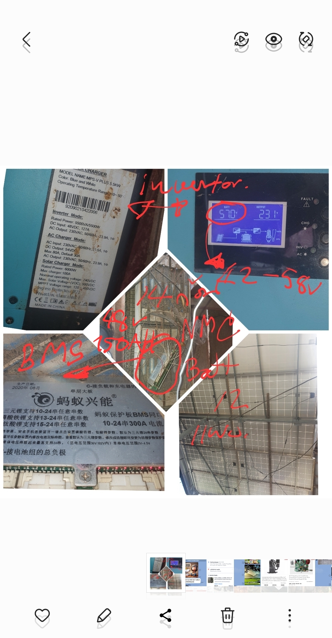 1.  แผงมีโพลี่​ 12 แผง​ @350 วัตต์​ ราคา​ @2,000  แผงมือสองใช้ไปแล้วปีเดียว​เอง​รวม​ 24,000 บาทได้ไฟรวม​จากแผงเมื่อแดดเต็ม​ที่​ 4.2 kW  มันต้องเกินความจุแบท​ เพราะกลางวันผมใช้ทั้งพัดลมหลายตัว​ เครื่อง​ชงกาแฟ​  เครื่อง​บดตัวใหญ่​ ตู้เย็นใหญ่สองประตู​ 2 ตู้... ฯ... ​ แล้วยังใช้ชาร์จ​รถไฟฟ้าสองคันอีกด้วย... ซึ่งตรงนี้ทำให้ลดค่าน้ำมันไปเดือนละ​ 1,500-2,000 บาทต่อเดือน